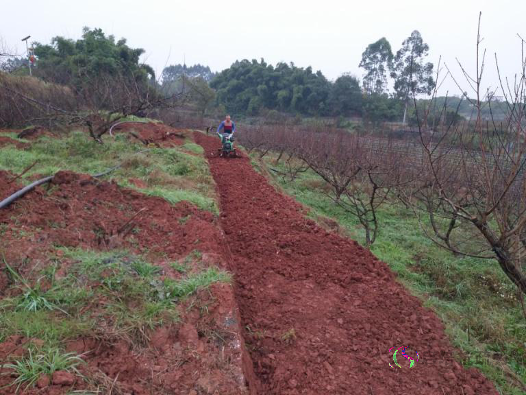 手扶小型旋耕机作业